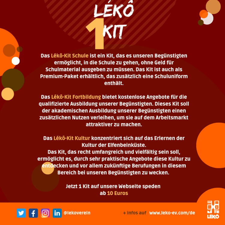 WICHTIG: LĂ©KĂŽ Verein und LĂ©KĂŽ CĂŽte dâIvoire sammeln weiterhin bis zum 30. Juli fĂŒr LĂ©KĂŽ Fortbildungs Kits fĂŒr Studenten und junge Arbeitssuchende aus unbegĂŒndisgte Umfeld in Abidjan und Umgebung